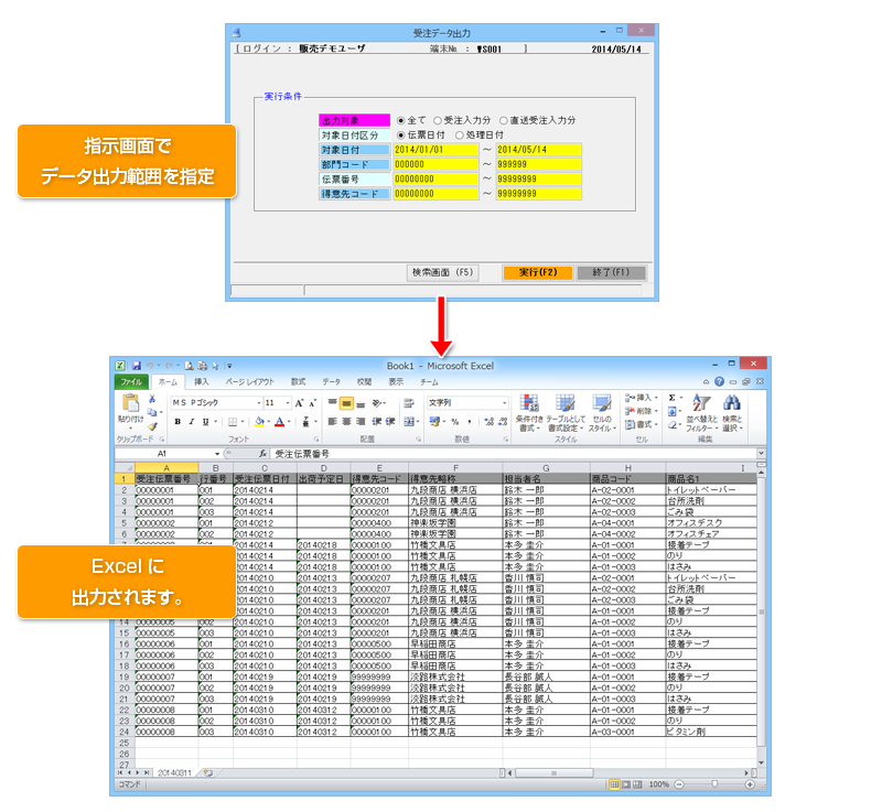 - 統計機能 ― 販売系、購買系の各種データをエクセルへ出力